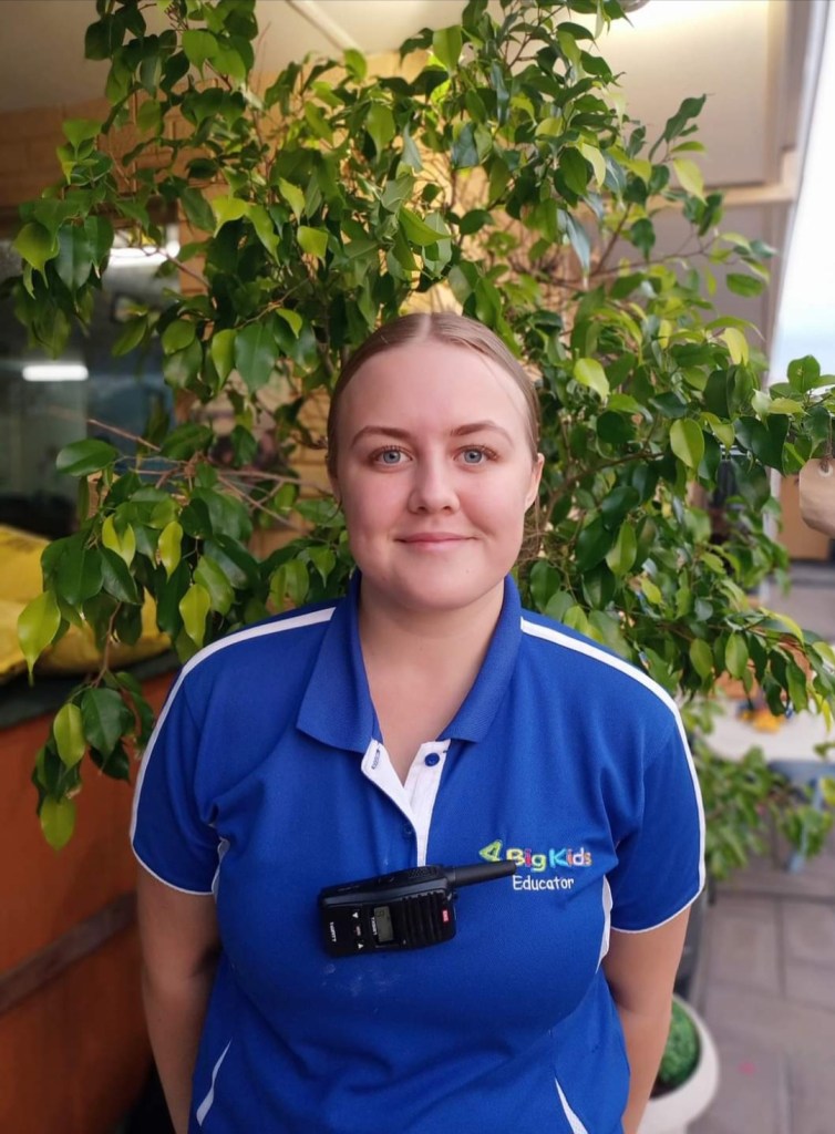 This is Samantha, one of our three trainees, Samantha is studying her, Cert III in Early Childhood Education and Care, this will make Sam Qualified in OSHC. Samantha came to 4 Big Kids when she was 5 yrs. old, soon to turn 18yrs. So, she really knows how we run our ship here at 4 Big Kids. Many years if watching and learning.